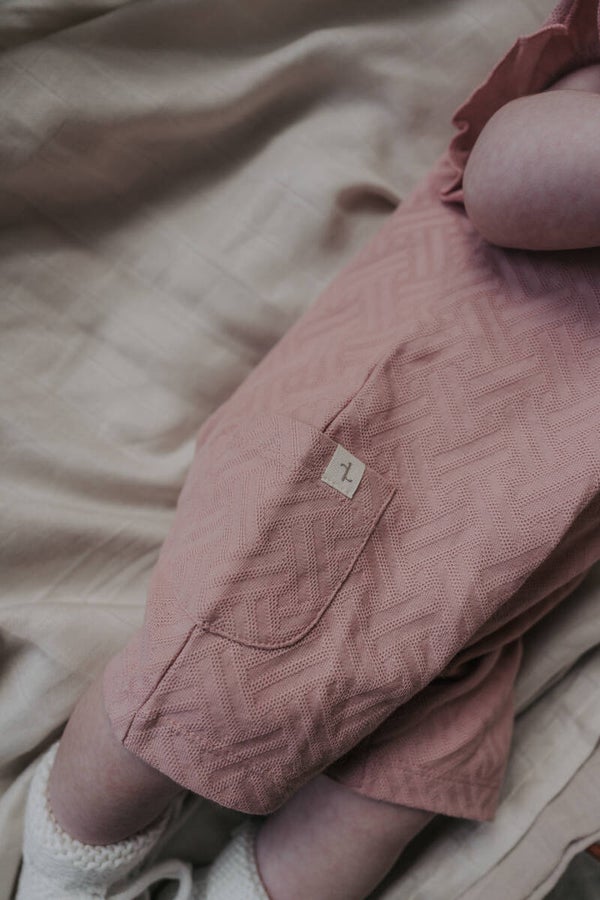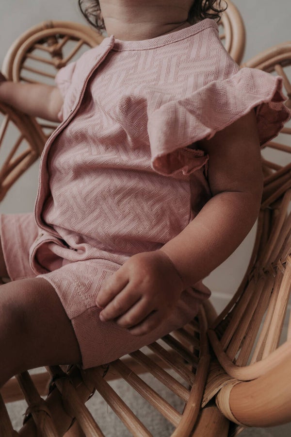 Summer onesie jacquard roze met ruffel